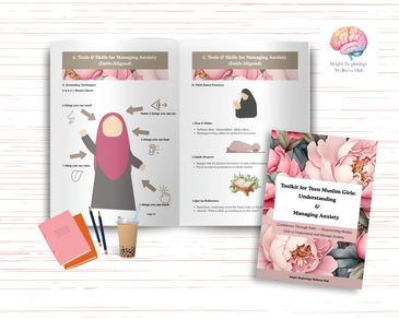 The Toolkit for Teen Muslim Girls: Understanding & Managing Anxiety is designed to empower young Muslim girls by helping them understand and manage anxiety through both psychological strategies and Islamic teachings. It provides a supportive, faith-based approach to mental wellness, combining practical tools with spiritual guidance to build confidence, resilience, and emotional strength.